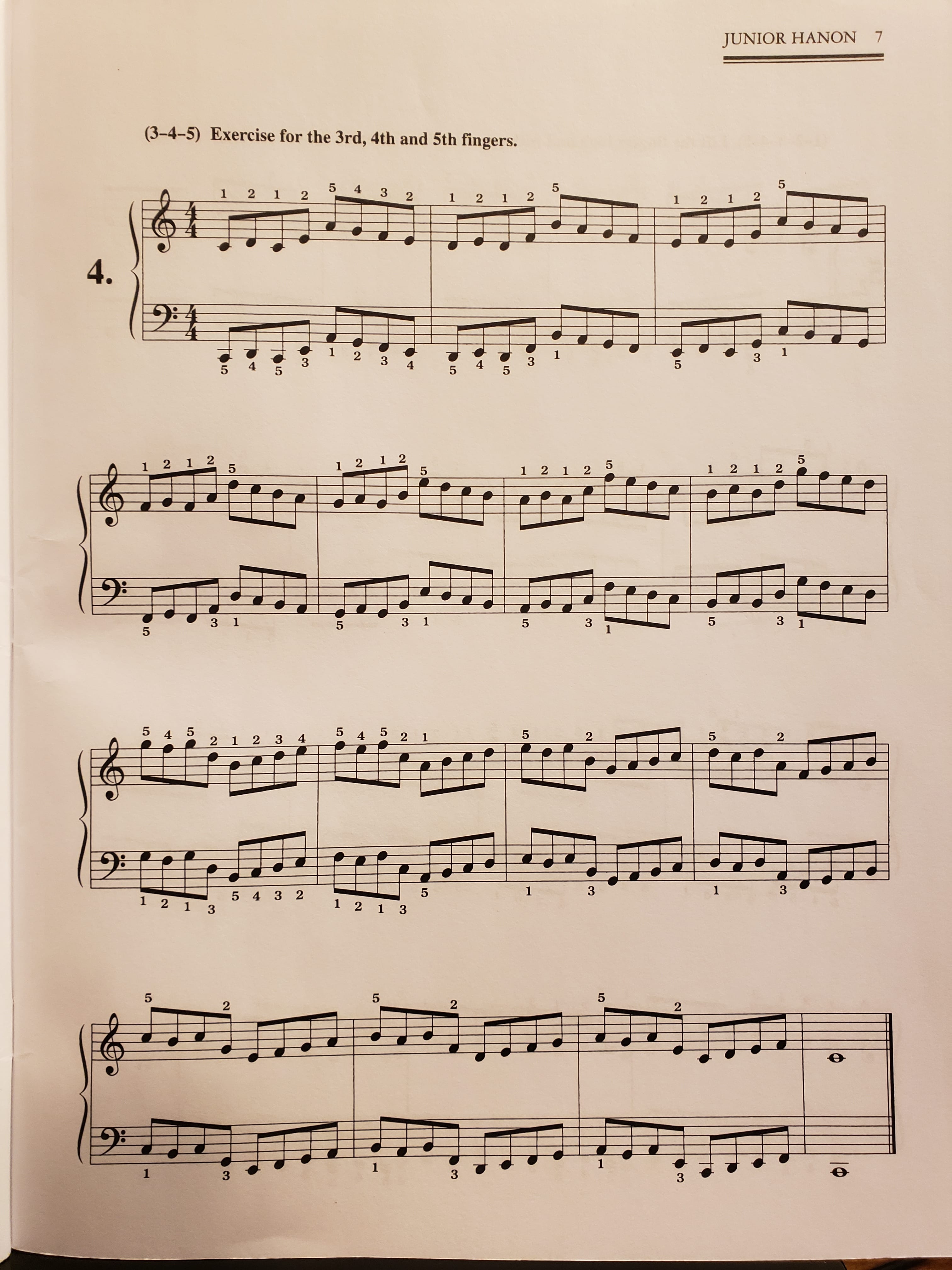 - Hanon #4 (right and left hand going up - separate and together - if ready)